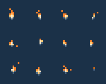 Assorted animations of pixel art candle flames that I created for one of my games. No one should ever have to animate as many candles as I did for this game, so I'm making them available for anyone to use. Free to use, released under the CC0 license.